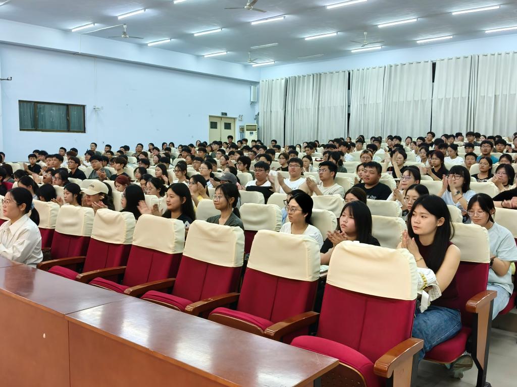 教师代表刘洋结合自身教学和科研方面的经历,建议新生认真规划大学生活,明确职业方向,鼓励他们通过多元途径拓展自身能力;她强调大学学习需自主创新,结合地理科学、风景园林等专业特点,提醒新生把握专业重点、提升技能,助力不同基础学生学会学习;呼吁新生以感恩之心面对大学生活。她承诺教师团队将秉持热爱与责任,以“治学严谨、诲人不倦” 准则育人,最后寄语全体男生可以成为 “高于眼界、富于实践、帅在处世” 的 “高富帅”,全体女生可以成为 “白于品性、富于思维、美在心灵” 的 “白富美”。